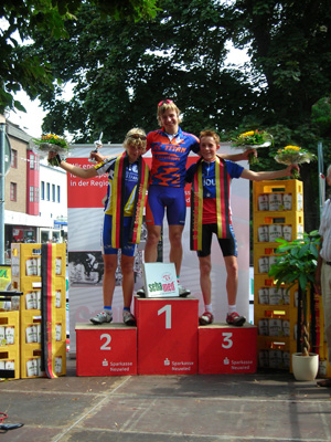 Beim heutigen Rennen in Neuwied konnten sich alle drei Kometen unter den besten 10 Fahrern platzieren. Direkt nach dem Start attackierte Lukas Jürss zusammen mit Sören und nur Lucas Wollenhaupt und Moritz Richter konnten dem Tempo folgen. Dahinter bildeten Nils und Benjamin mit 4 weiteren Fahrern eine Verfolgergruppe. Eine Runde vor Schluss sprengte Lukas Jürss nochmals die Spitzengruppe und erreichte als Solist das Ziel. Sören konnte den Spurt um Platz zwei locker für sich entscheiden. Benjamin Lippok gewann den Sprint der Verfolger und belegte den 5.Platz. Nils Politt wurde mit Platz 7 belohnt.